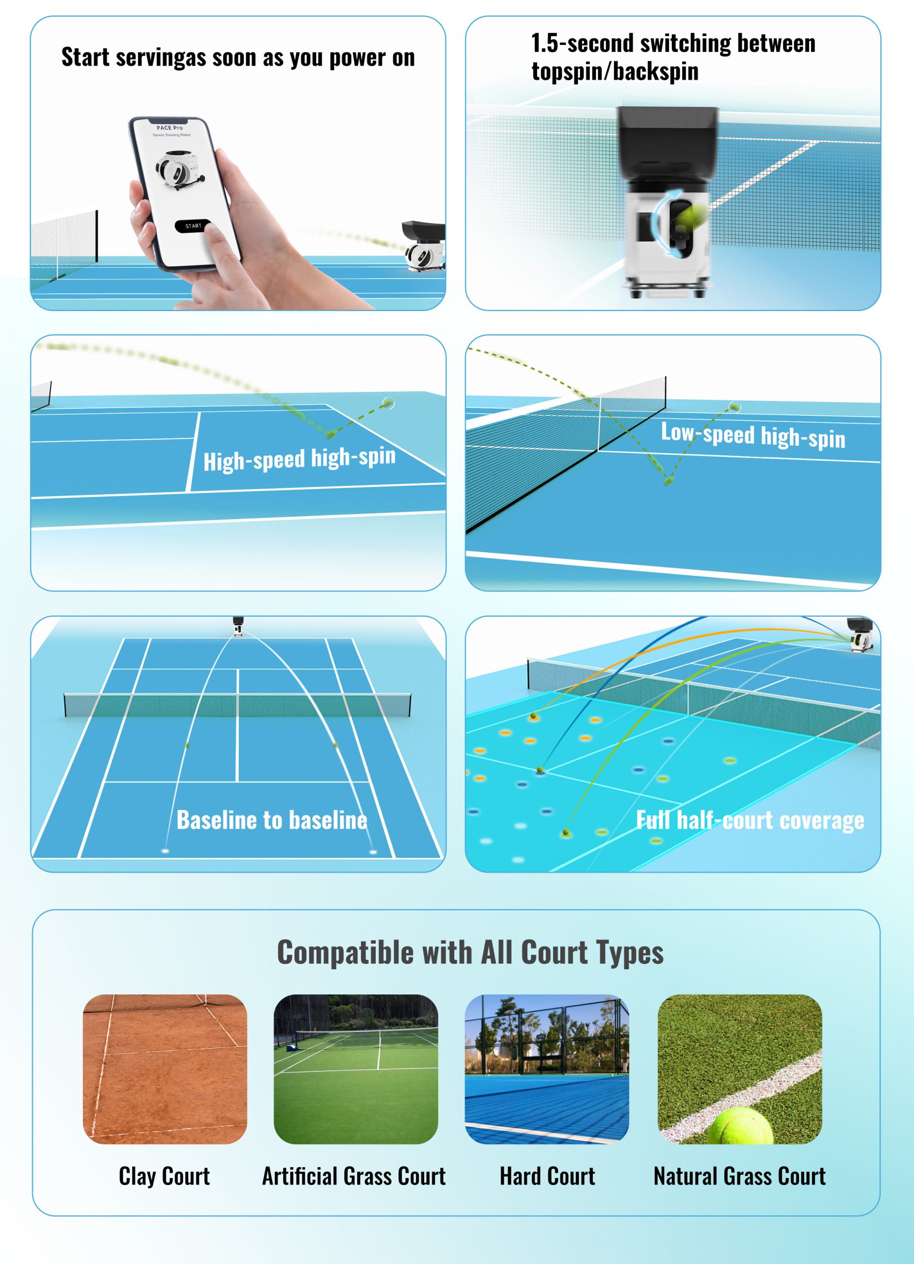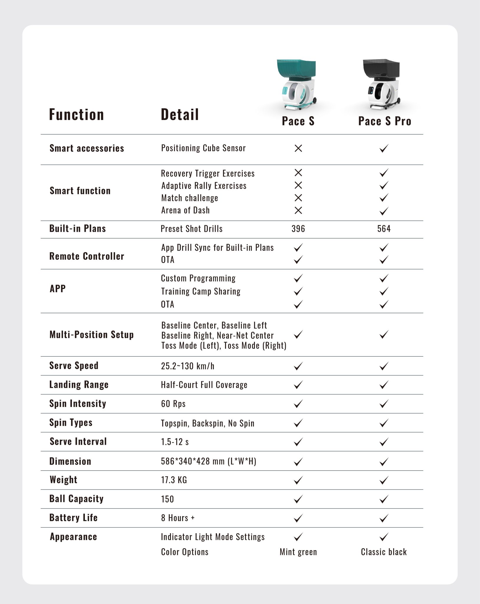 The Pace S series is not just a tennis robot, but your intelligent training partner.